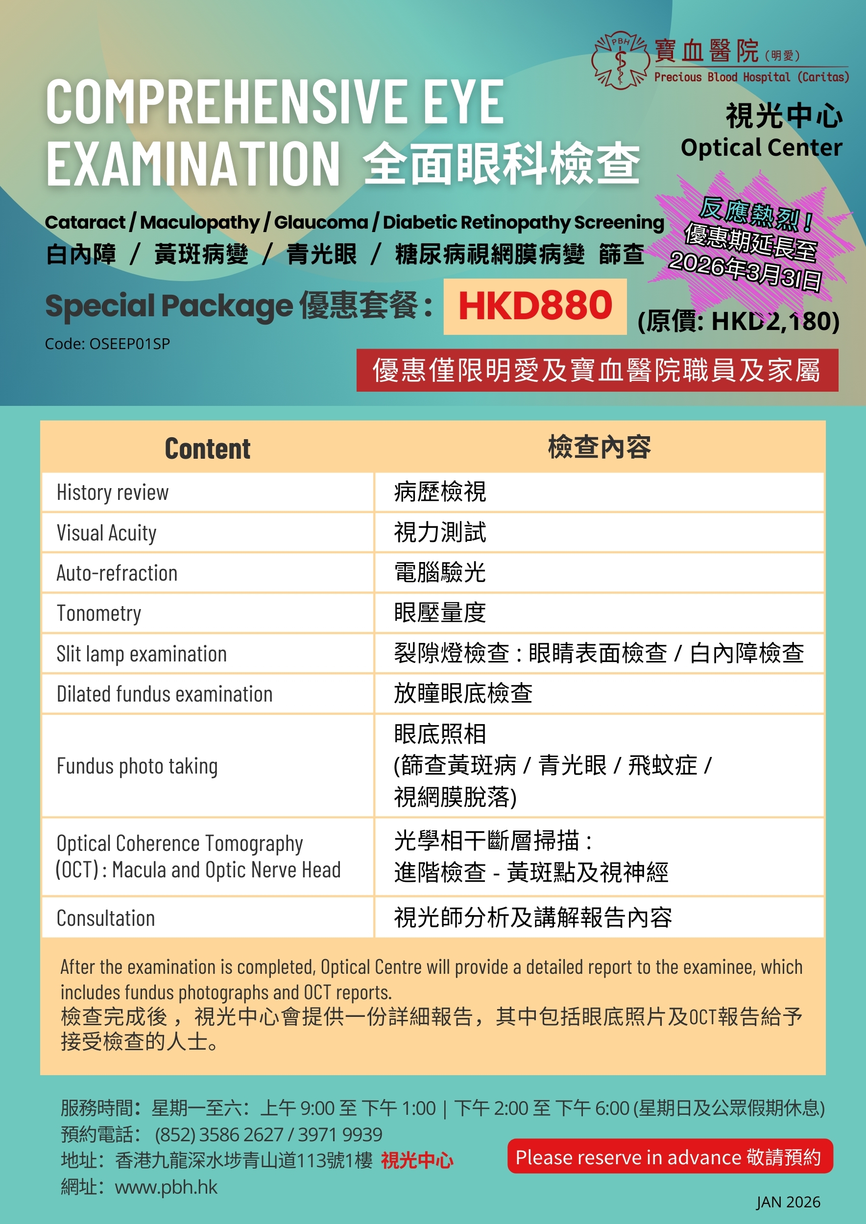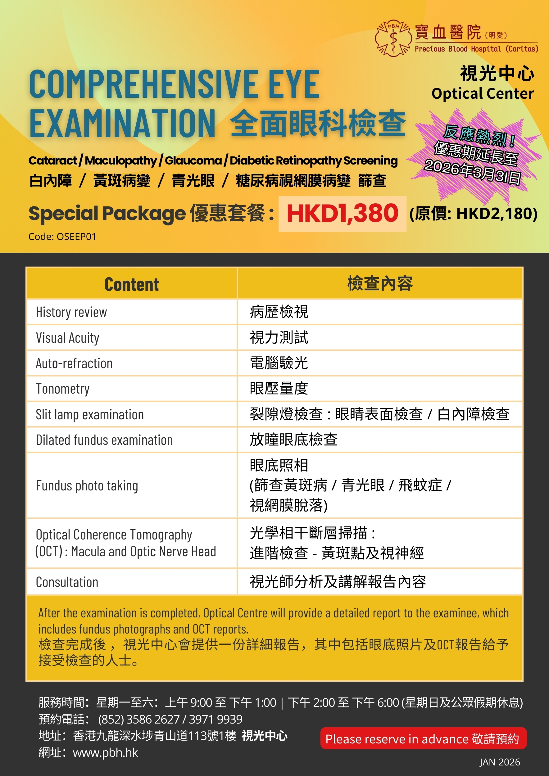 由專業註冊視光師 (第 I 部份) 主理,提供不同視光檢查服務,包括放大瞳孔眼底檢查、黃斑點掃描、視神經掃描、眼底照相、驗眼配鏡服務、控制近視鏡片及漸進鏡片等,敬請來電預約 (電話:3971 9939 / 3586 2627)